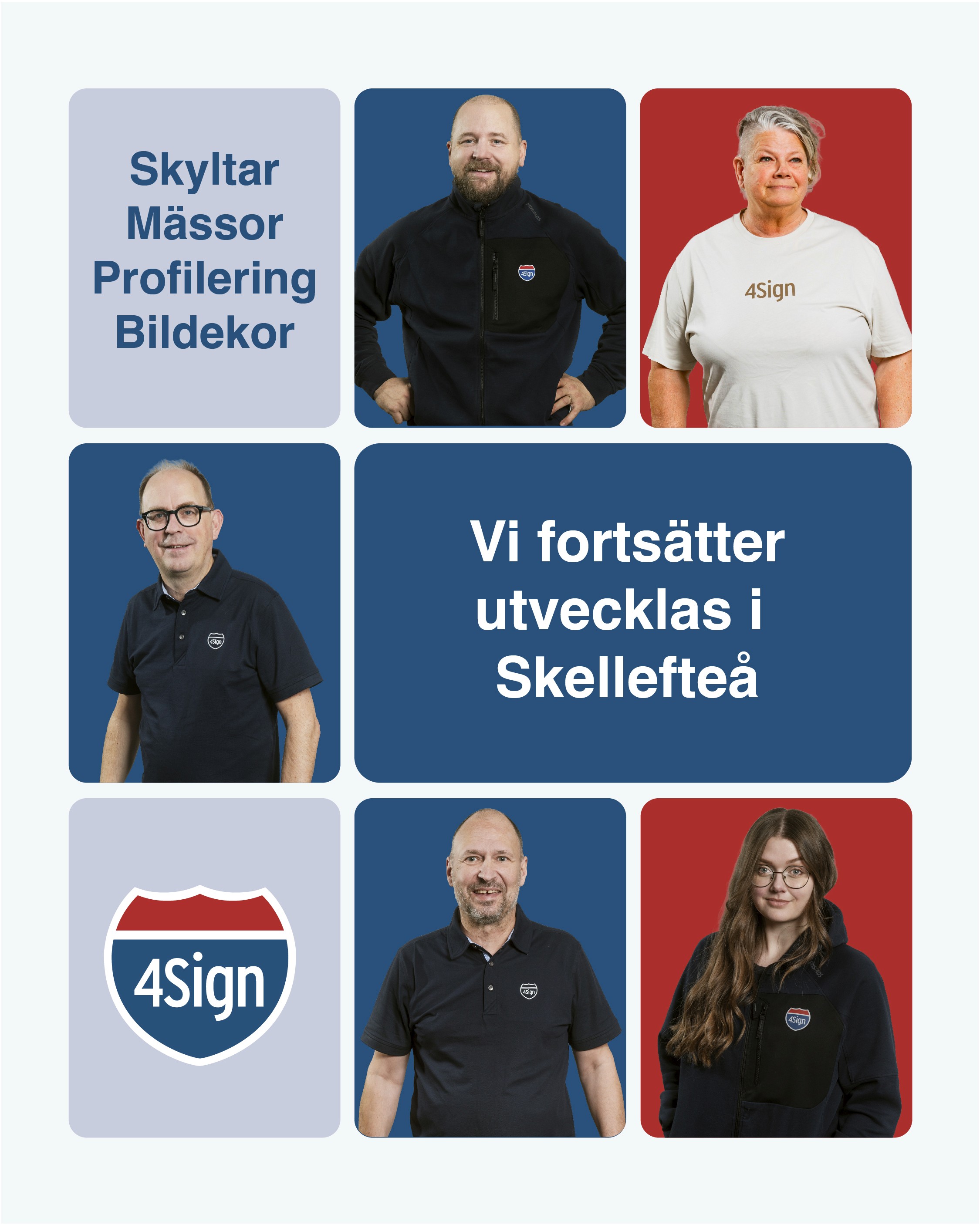 4Sign Skellefteå stärker sin position som den ledande partnern för visuell kommunikation i Västerbotten. Med ett utökat säljteam och effektiviserade processer levererar vi nu ännu snabbare och mer kreativa skylt- och dekorlösningar anpassade för det nordliga klimatet.